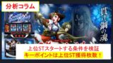 機種検索 X Facebook はてブ LINE コピー 2026.02.142026.03.27 目次 Lカバネリ2L炎炎2Lゴブスレ2Lマギレコ一騎当千モンハンライズかぐや様は告らせたいとらぶるダークネスゴッドイーターリザレクションL戦国乙女 Lカバネリ2 【カバネリ2】上位ループは設定差うんぬんの前に獲得枚数が大事!要約 上位ST後4087回の次のSTを分析した結果上位ループ(上位STスタート)する確率は、上位STで1200枚獲得してあると劇的に上がる。 となりました。この差より設定差は有るが分かりませんが、さすがに80%で再突入は無視できない数字だと... 【カバネリ2】期待値表(3580台分)「L甲鉄城のカバネリ2 海門決戦」の期待値を状態別(朝一・上位後・駆け抜け・通常)に詳細算出!非等価店での換金ギャップや持ちメダル枚数を考慮したリアルタイム計算ツールを搭載。有利区間差枚に応じた独自の期待値表で、最適な狙い目とやめ時が分かります。 【Lカバネリ2】有利区間切断条件は”区間プラス”の[海門回想]で毎回リセット?分析してみた。スマスロ「L甲鉄城のカバネリ海門決戦(カバネリ2)」の有利区間切断条件を、134台・約1万2千行の実戦データから徹底分析!結論は「区間差枚プラス時の海門回想」でのリセット。マイナス域での非切断挙動や、穢れ狙い時の注意点など、今後の立ち回りに直結する独自の考察をまとめました。 【Lカバネリ2】朝一4480台見たら勝率「約41.1%」だった。スマスロ「カバネリ2(海門決戦)」の朝一リセット台498件を独自集計!期待値だけでなく、リアルな「勝率(約44%)」や「平均獲得枚数(約661枚)」、300Gゾーンの強さなど実戦データに基づく数値を公開。資金が限られた時の立ち回りに必見です。 【Lカバネリ2】設定別コイン持ち(ベース)算出レポート|下段ベル確率差による投資速度への影響L甲鉄城のカバネリ海門決戦(カバネリ2)のリアルなコイン持ちが知りたい方へ。公表された「下段ベル確率」の設定差から、全設定のベース数値を逆算した記事です。設定1の31.4Gに対し、設定6は31.88G?。期待値計算やAT性能分析の精度向上にお役立てください! 【Lカバネリ2】投資金額・必要枚数早見表|実戦用「追加投資・追い銭」完全シミュレーション実戦中の押し引き判断に!【Lカバネリ2】の目標G数(天井など)までに必要な投資額・メダル数を50G刻みでパッと見で確認できる早見表です。「今の手持ちメダルで足りる?追加の現金はいくら?」がすぐわかります。46枚・50枚貸し両対応。実戦のお供にブックマーク推奨! 【Lカバネリ2】非等価トントン枚数算出表|46/50枚貸し・各交換率を完全網羅非等価店でのLカバネリ2実戦に必須!「結局、何枚出せばプラマイゼロ(チャラ)なの?」がパッと見でわかる早見表です。46枚・50枚貸し、5.0〜5.6枚交換まで各レートを完全網羅。換金ギャップによる「見えないマイナス」を防ぎ、冷静なヤメ時判断に活用してください! 【逆算】Lカバネリ2のAT期待枚数を算出|高設定ほど「STが強い」?前作とは違いそうな出玉設計を考察「Lカバネリ2は前作みたいにAT入れれば低設定でもやれるの?」という疑問への解答記事です。公表スペックからST期待獲得枚数を独自に逆算した結果、前作のフラット設計とは異なる「高設定ほどSTが強い」という衝撃の格差が浮き彫りに。初打ち前に知っておくべき、前作との決定的な違いと立ち回りの注意点を考察します。 L炎炎2 【L炎炎の消防隊2】 投資・回収枚数早見表【46枚/50枚貸・非等価対応】スマスロ「L炎炎の消防隊2」の投資金額に対する回収必要枚数早見表です。【46枚貸/50枚貸】および【5.0枚~5.6枚交換】の非等価ホールに完全対応。「あと何枚でトントンか?」「天井までいくらか?」の立ち回り判断にご活用ください。スマホ特化で見やすくまとめています。 Lゴブスレ2 【Lゴブリンスレイヤー2】 投資・回収枚数早見表【50枚/46枚貸対応】Lゴブリンスレイヤー2(Lゴブスレ2)の投資金額に対する回収必要枚数、およびプラス収支へ転じるためのセット数目安の早見表です。 ホールでの稼働判断、およびヤメ時の算出にご活用ください。【50枚貸】投資金額・回収必要枚数早見表投資金額と交換率... Lゴブリンスレイヤー2のやめどきをデータから考察。天井後の引き戻し18%とゾーン別の次回挙動【かもしれない】スマスロ「Lゴブリンスレイヤー2」の実戦データ2015件をAI解析。1500G天井到達後は引き戻し率が18.1%にアップ?独自集計から見えた「天井恩恵」の可能性と、ゾーン当選後のリスク、具体的な「やめどき」を考察します。 Lゴブリンスレイヤー2の有利区間切断タイミングを考察!上位AT突入で毎回切断か?スマスロ「ゴブスレ2」の有利区間切断タイミングを独自データ(n=84)から徹底考察。上位AT「アルティメットループ」中は毎回リセットされる?差枚2400枚の壁の真実や、上位履歴あり台の「切断狙い」のリスクについて解説します。 Lマギレコ (スマスロ)マギアレコード [メモ]まどマギ外伝の本作。初まどを求め続ける亡霊が多数おられると思いますが、ついに成仏できるかもしれません。(