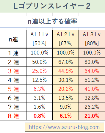 下位ATレベル別・連チャン発生率早見表