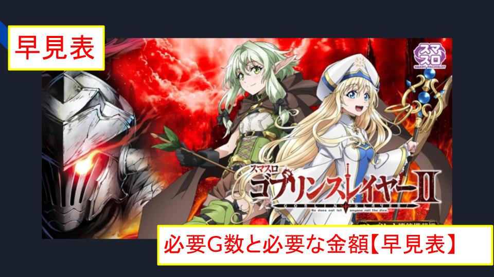 Lゴブリンスレイヤー2(Lゴブスレ2)の投資金額に対する回収必要枚数、およびプラス収支へ転じるためのセット数目安の早見表です。