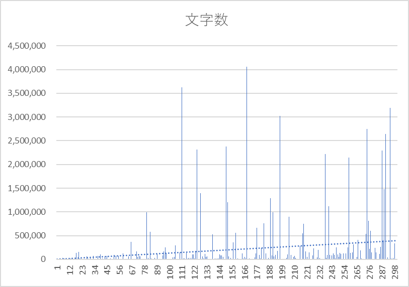 | 出現数 | 最高文字数 | 最低文字数 | 平均文字数 | 文字数中央 | |