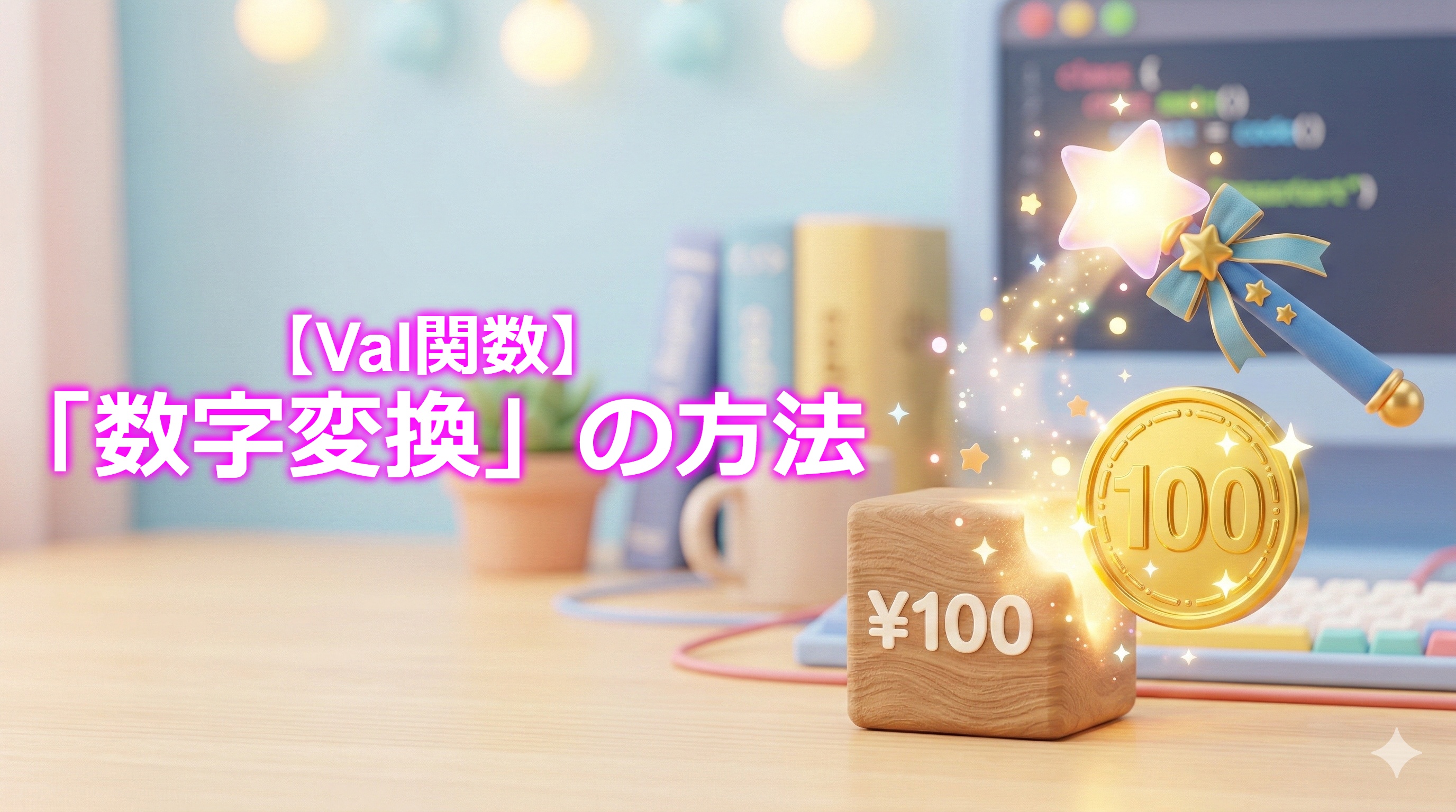 この魔法を使うと、文字の “100” が、計算できる数字の 100 に変わります。 便利なのは、「100円」のように後ろに文字がついていても、数字の部分だけを抜き出してくれる点です。(※先頭が数字である必要があります)